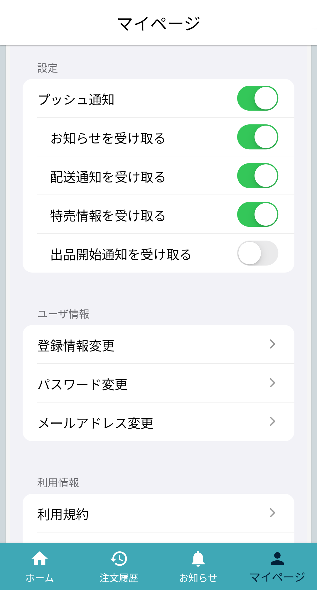 1.右下マイページアイコンをタップして、マイページ画面表示
