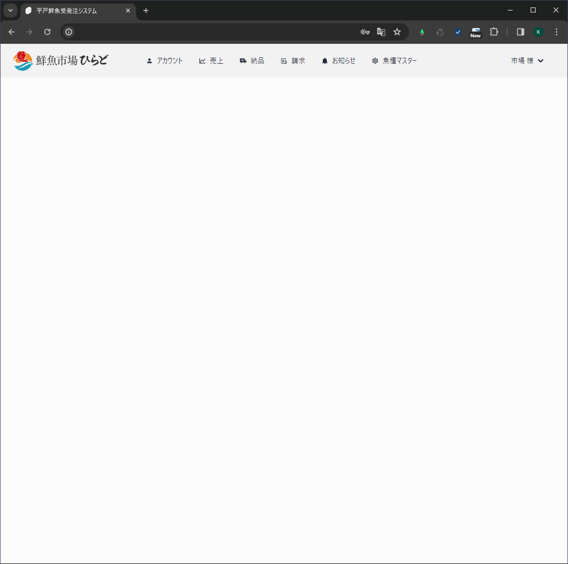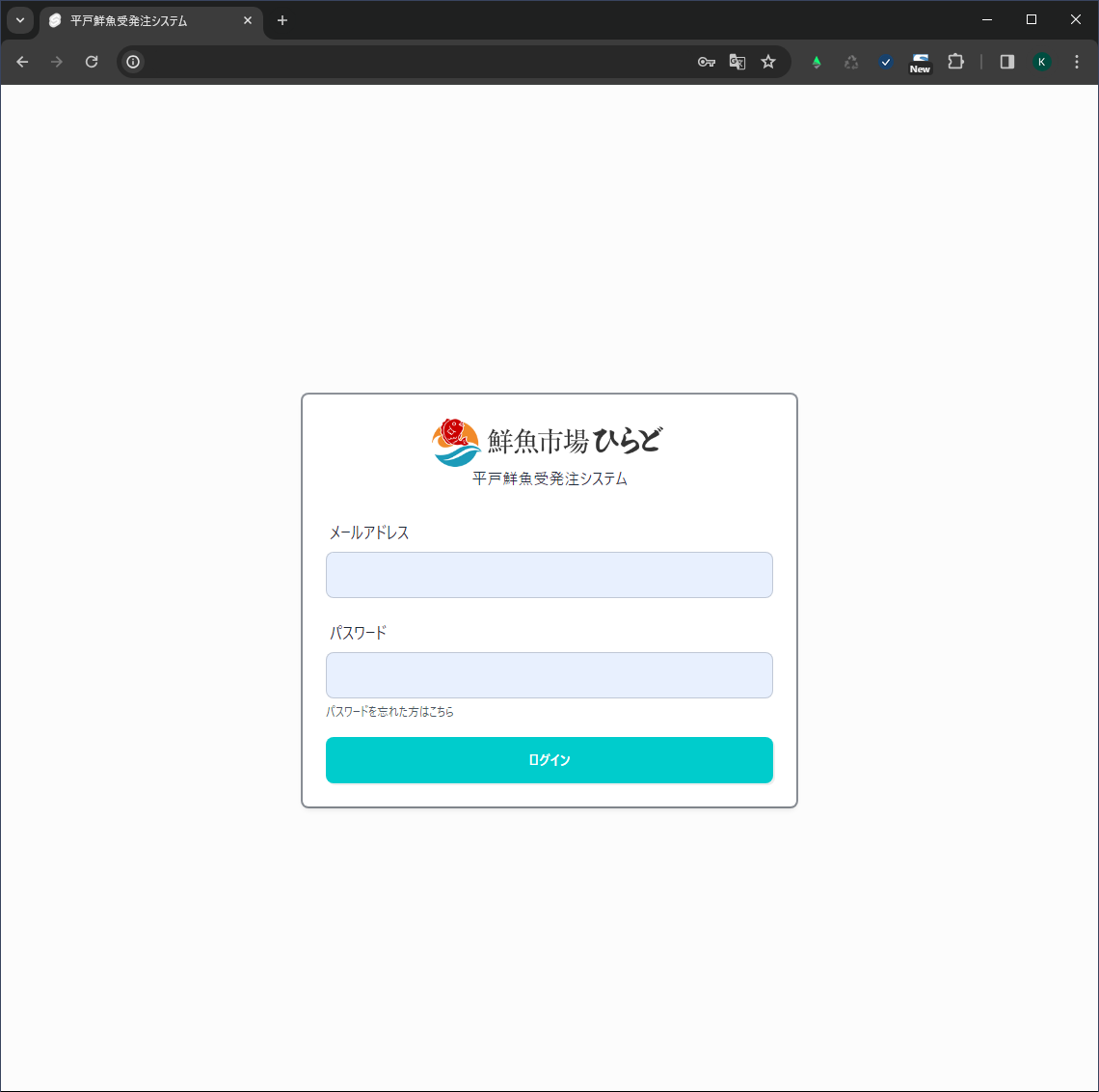 1.「ひらど鮮魚店 平戸鮮魚受発注システム」管理Webページを開き、メールアドレス、パスワードでログインする